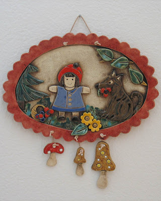 Erstmals möchte ich mich bei Nic und Sonja bedanken, dass ich ihre Vorlagen für diese Tonsachen verwenden durfte. Dieser Türkranz schmückt derzeit unsere Eingangstür. Das wunderschöne Märchen-Stickbild von Nic und Sonja hat mich so fasziniert, dass ich es mit meiner Bekannten in Ton umgesetzt habe. Dabei entstanden schon einige Weihnachtsgeschenke und dieses hier habe ich für unseren Sonnenschein Lea gemacht.